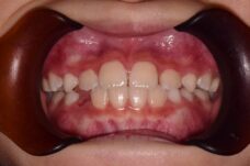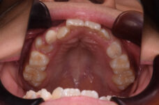 - 治療の開始が遅く、犬歯と奥歯の生え代わりが始まっていましたが、床矯正より治療スピードが早いアライナー矯正を使用して、犬歯のスペースをとても短期間に作ることができました。八重歯を防げましたので固定式の装置は必要なくなりました。永久歯がすべて生えるまでは予防歯科で歯の生え代わりと機能を管理します。