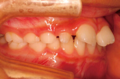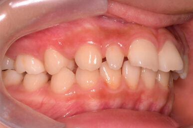 - 下顎が後ろにさがっているために出っ歯に見える状態でした。