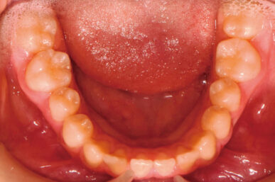 - 出っ歯が気になるという事でしたが、下顎がさがっていました。治療開始が遅かったため生え代わりを待つ必要があり、治療期間が長くなりました。