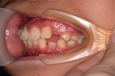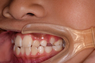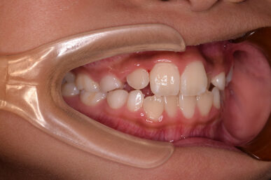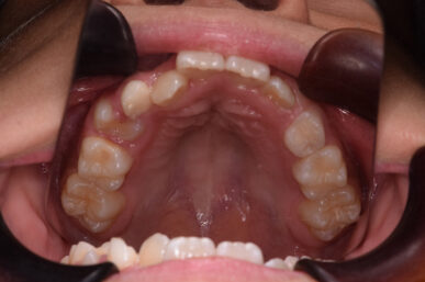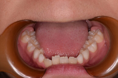 治療の開始が遅く、犬歯と奥歯の生え代わりが始まっていましたが、床矯正より治療スピードが早いアライナー矯正を使用して、犬歯のスペースをとても短期間に作ることができました。八重歯を防げましたので固定式の装置は必要なくなりました。永久歯がすべて生えるまでは予防歯科で歯の生え代わりと機能を管理します。